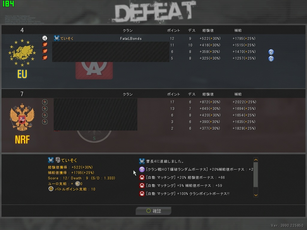 前のクラメンと一緒にマッチしてたら偶然ALL KILLできた。